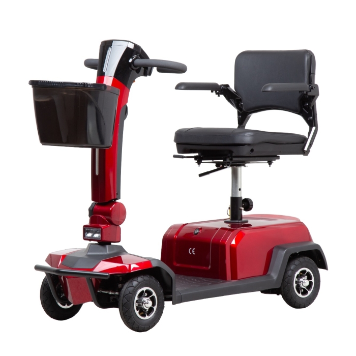Leijona 800 är smidig med sina mått på 1130 × 510 × 970 mm och väger endast 45 kg, vilket gör den enkel att hantera och transportera. Den starka ramen klarar en lastkapacitet på upp till 150 kg, och lastkorgen framtill gör att du enkelt får med dig varor eller personliga tillhörigheter. Armstöd, backväxel och en svängradie på bara 900 mm gör parkering och vändningar enkla, även i trånga utrymmen. Och självklart finns tändningslås med två nycklar för extra trygghet.